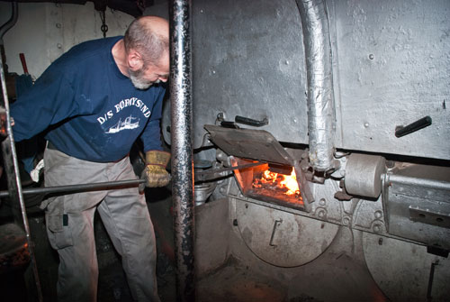Fra maskinrommet med en ekte maskinist. Dampmaskin-maskinist sågar. Her er det orden på saker og ting.